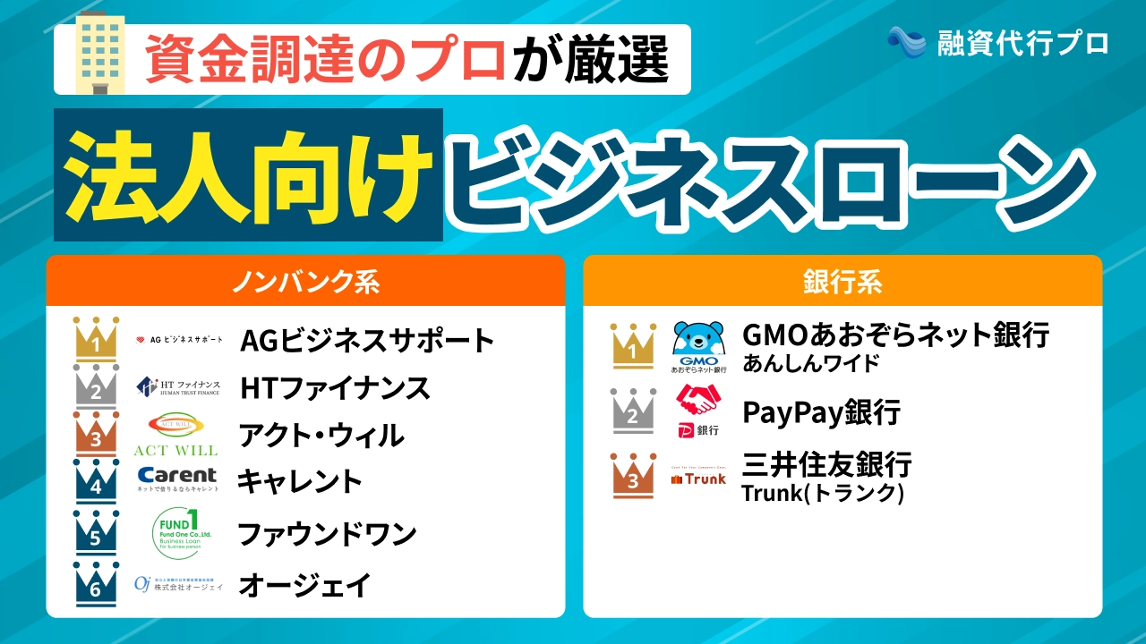 ◆ 【法人向け】ノンバンク系おすすめのビジネスローン